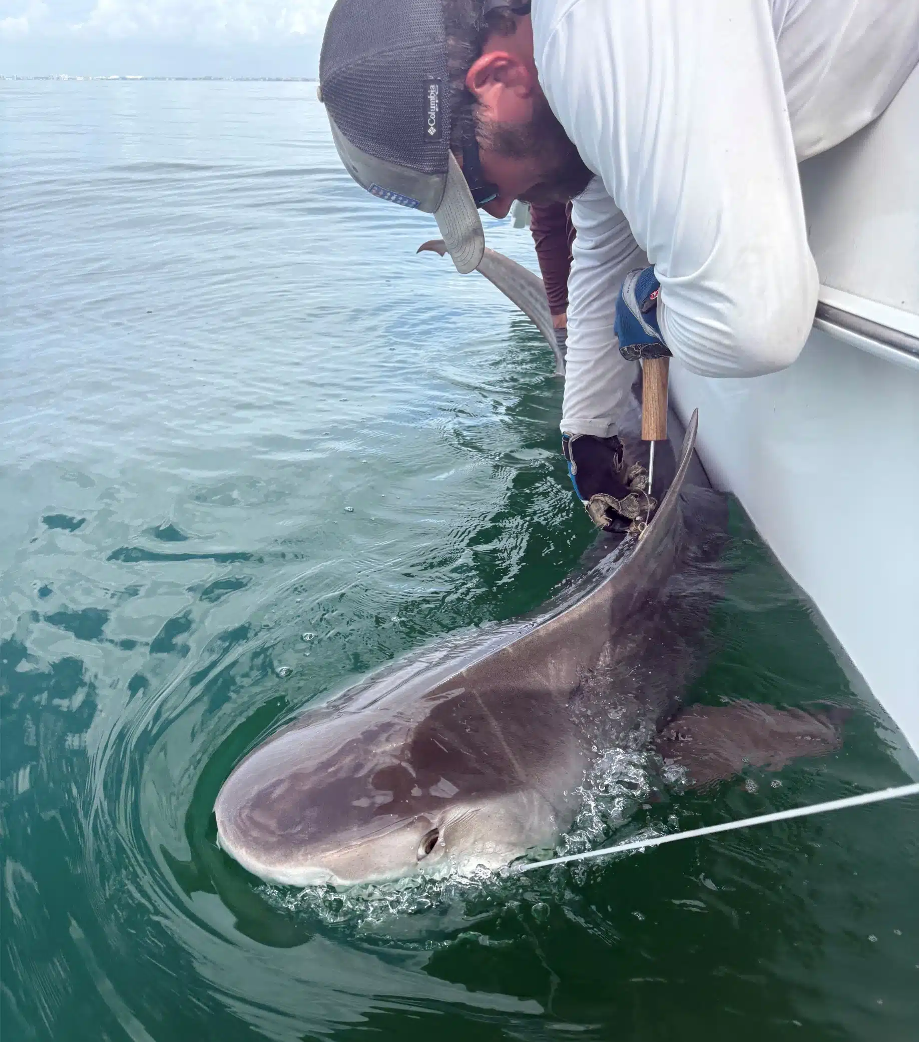 FWC joined the Gulf-wide SEAMAP Bottom Longline Survey in 2024 and after two successful years of sampling, the team is looking forward to kicking off a third year of sampling this April. The long-term continuation of this survey will provide data on abundance, habitat use, and migrations of coastal sharks and other important species. Andrew is coupling this broad information with his specific research work on the ontogenetic habitat shifts of smalltooth sawfish.