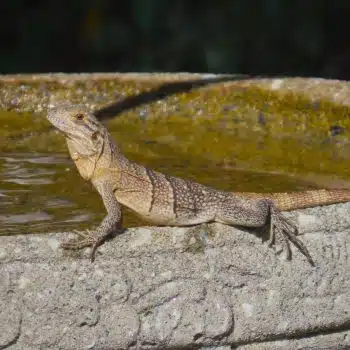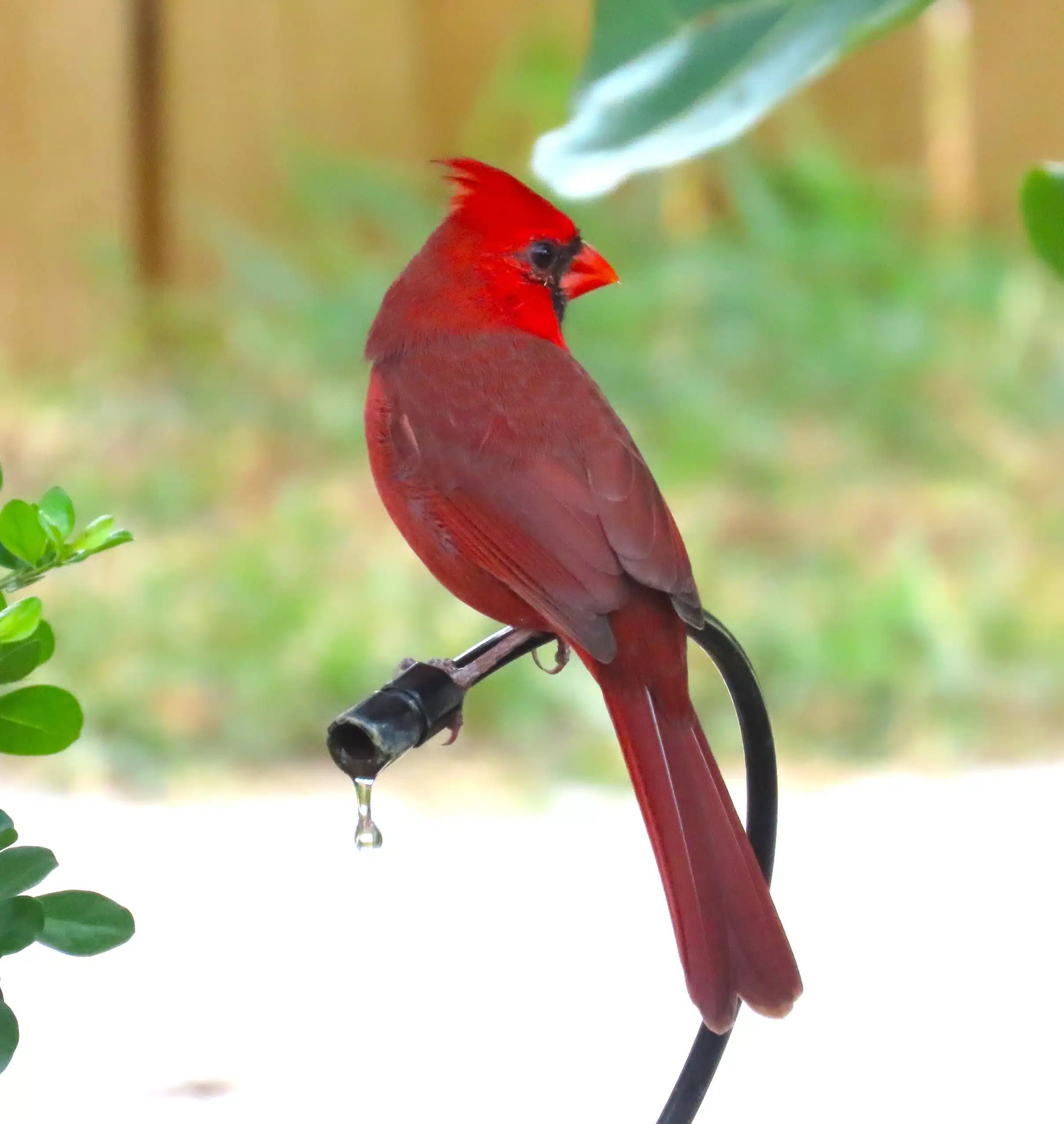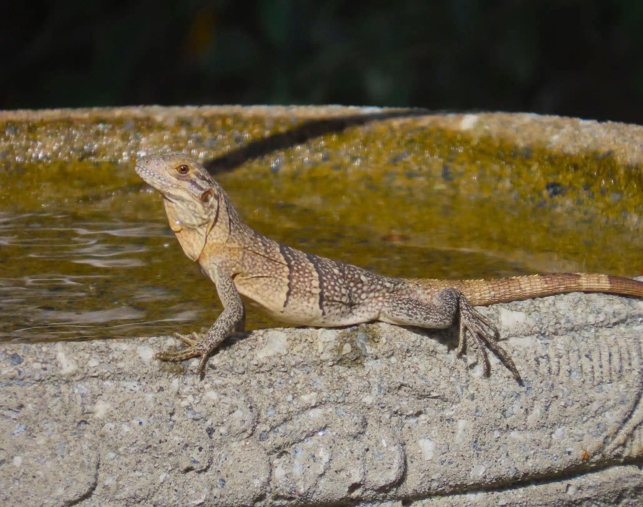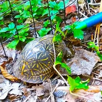 Manasota Key is a barrier island and as such has no surface freshwater available except after rain. But in Fall there is little rain so many birds obtain water by feeding on droplets of dew on cool mornings. I offer water in dripping bird baths and find that many species appreciate this resource. This male prairie warbler which might be a locally breeding bird comes to one of my three baths daily. Cardinals drink daily also and primarily use the drip rather than the pool of water below. Even my uninvited iguanas will drink from the baths. Box turtles tolerate dehydration better than many species but take advantage of any opportunity to drink- this turtle found a running hose put out to water plants.