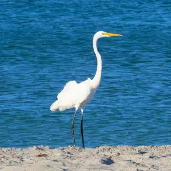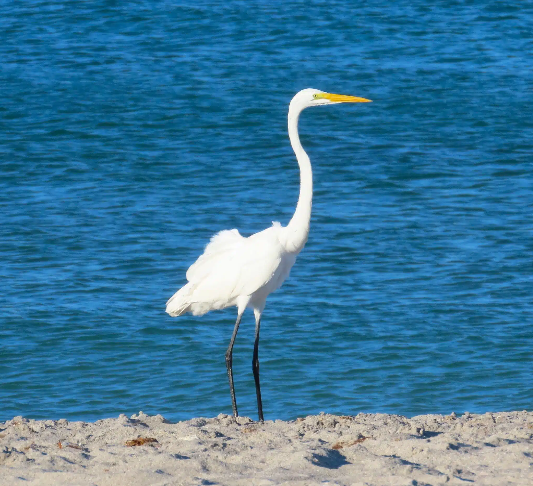 By the end of October air temperatures start to drop in a noticeable fashion and I turn off my air conditioner. You no longer have to limit your outdoor activities to the morning to escape the afternoon heat. Yet the human “snowbirds” are still relatively scarce and you can enjoy a morning sunrise and walk on the beach sometimes without seeing more than a few people. There are quite a few birds feeding on the beach- one of the most beloved is the sanderling- a tiny sandpiper that races up and down in front of the waves. Few realize what a miraculous bird this is that migrates thousands of miles to the Arctic to breed. Indeed back in the day when I spent lots of time on Palm Island I photographed a sanderling on Oct. 18, 2015, with some amazing “bling.” These bands revealed that this bird was marked on Chaplin Lake, Saskatchewan, Canada. This is a huge saline lake that supports billions of brine flies and midges that are eaten by migrating shorebirds as they fly northward. So as you are walking on the beach and perhaps looking for shark teeth take a moment and look at the legs of the shorebirds to see if they have been banded.