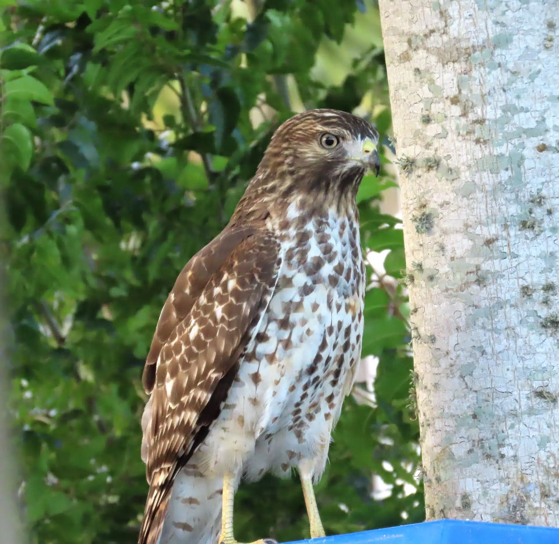 - A young red shouldered hawk is a regular visitor to my yard looking for prey