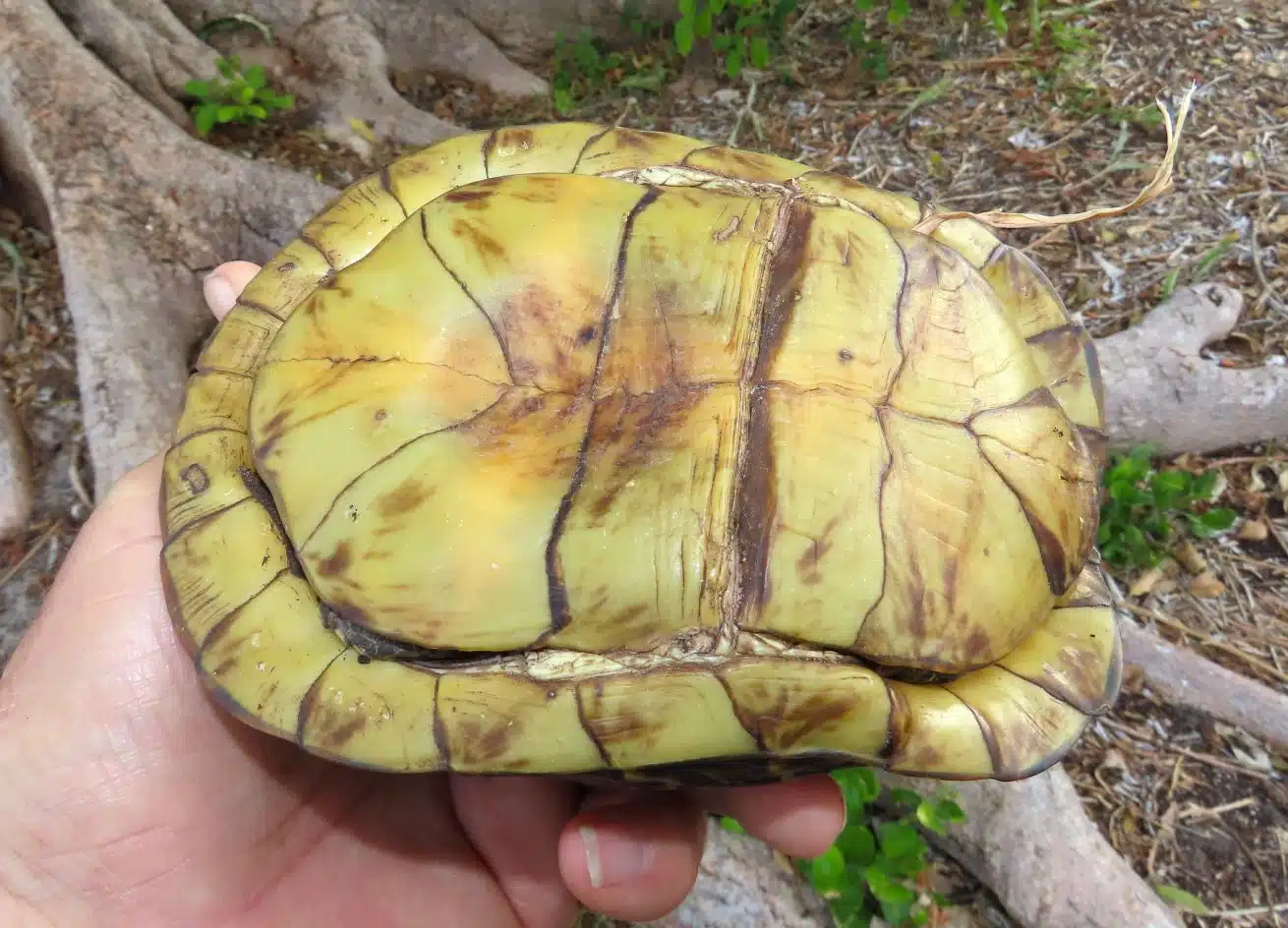 One non-native reptile that is not popular among gardeners is the Mexican ctenosaur/iguana which has invaded my yard over the past several years. I have been surprised that they have not posed a major problem eating my plants. Much of their diet appears to be native and non-native “weeds” growing in the “lawn.” They do seem to be providing a major food source for red shouldered hawks. So far there is an apparently good relation with my gopher tortoises and box turtles. Indeed the turtles are sharing some living space under my sheds with the iguanas. Two gophers were mating recently which is a difficult practical matter for an animal inside a bony box. One morphological feature that assists the male in mounting the female is a concave lower shell/plastron. You can also see a considerable number of growth rings on the turtle shells which record annual changes in conditions. Turtles are quite long lived.