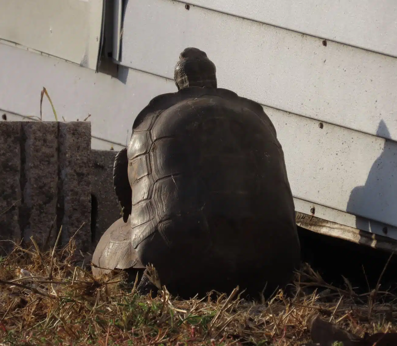 - A mating pair of gopher tortoises near my shed which they use as a substitute burrow