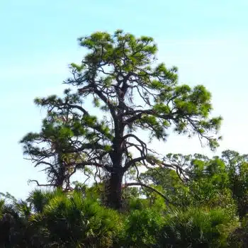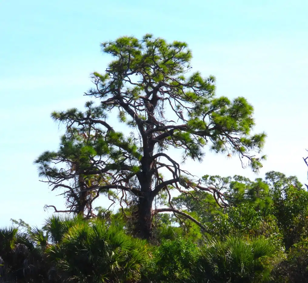 Our most common tree locally is the slash pine and we still have a few remnants of the forest that once (in the middle 1800’s) covered this area before widespread lumbering and turpentine operations destroyed them. This beautiful mature slash pine in Wildflower Preserve represents a mature tree with a rounded crown which is likely 100-200 years old. Many of these older trees have succumbed to the prevalent winter burning which is not the natural cycle which would have been primarily during summer thunderstorms. Pines are actually a sub-climax species which under more natural conditions would have been replaced by a climax canopy of hardwoods such as oaks.