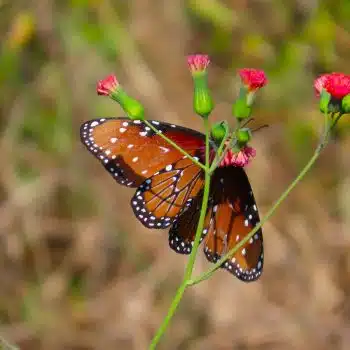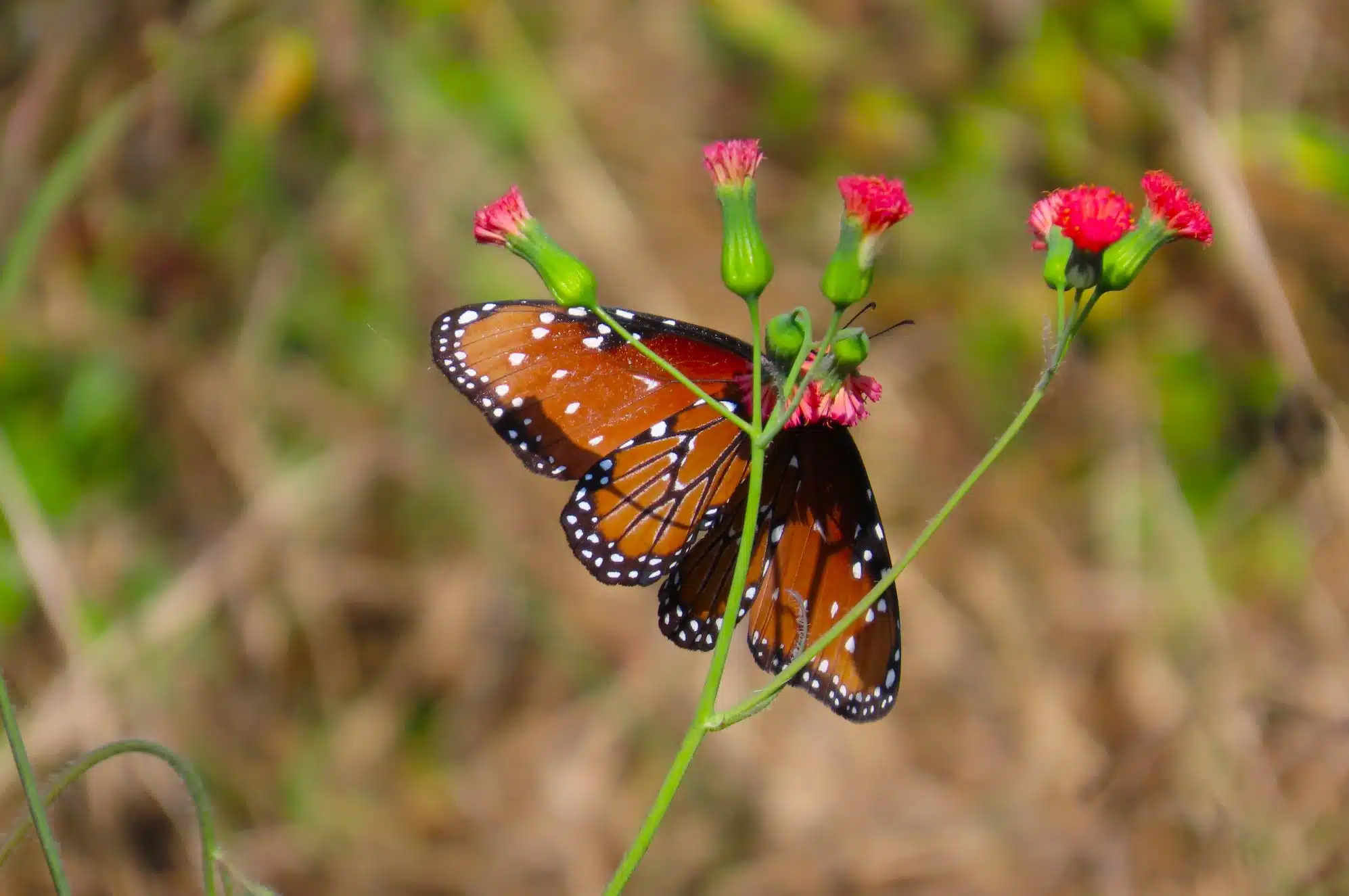 - A Queen butterfly mimic searches for nectar in a tassel flower