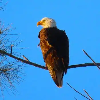 - A bald eagle often perches on this tall non-native casuarina tree near my yard