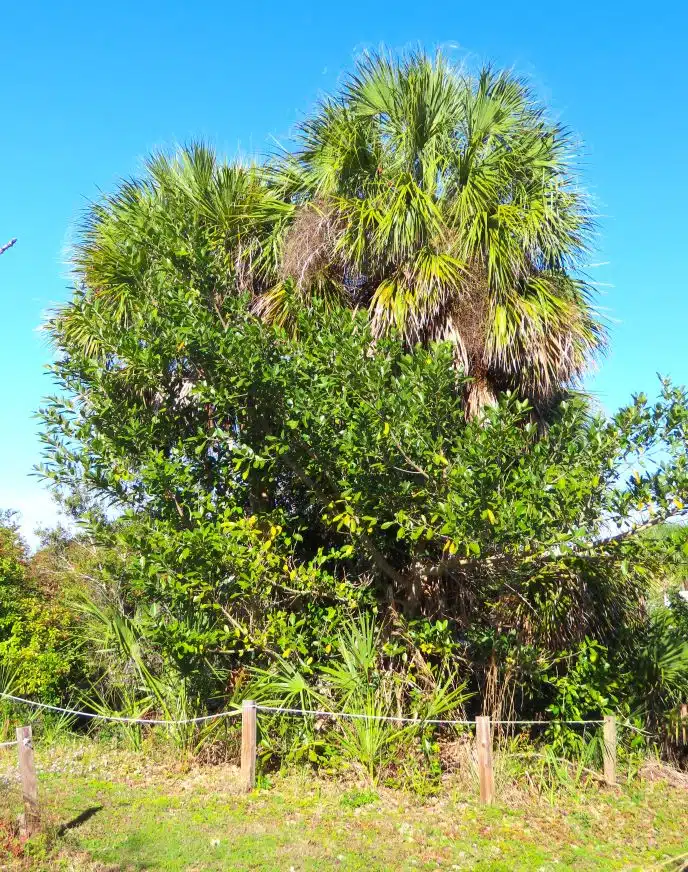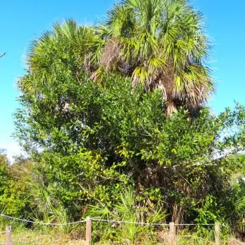 I am very fond of the native strangler fig tree which is both beautiful and very beneficial to birds who eat the fruits. It has a parasitic growth habit in that it typically grows up around a cabbage palm and eventually kills it. But its life cycle normally takes a very long time after a seed is deposited on a palm in the feces of a bird. To speed up the process I placed a small seedling fig on the base of this palm about 10 years ago and now it is flourishing. Very few of these figs are now left in the lower coastal plain since they are not very tolerant of occasional sea water immersion by storm surges. This was very well illustrated by the effects of the storm surge caused by hurricane Milton.